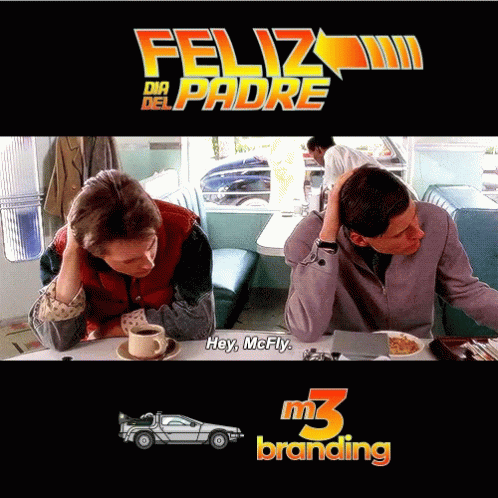 Michael J Fox as Marty McFly in a Back to the Future scene for Feliz Dia Del Padre.