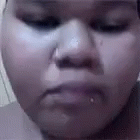 Close-up of a person, known as Favelada Colar De Beijos, eating with a lip piercing, embodying the Strawface meme.