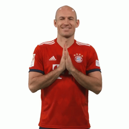 Arjen Robben in his FC Bayern Munich jersey, making a heartfelt thank you gesture to the fans.