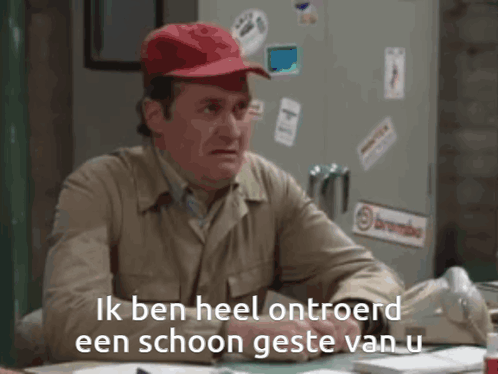 A man in a red cap is deeply moved by a beautiful gesture, expressing his heartfelt gratitude.