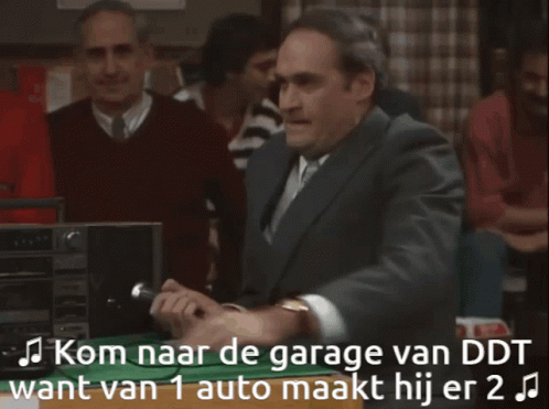 Fcdk Leonidas sings a jingle about DDT's garage, claiming he can make two cars out of one.