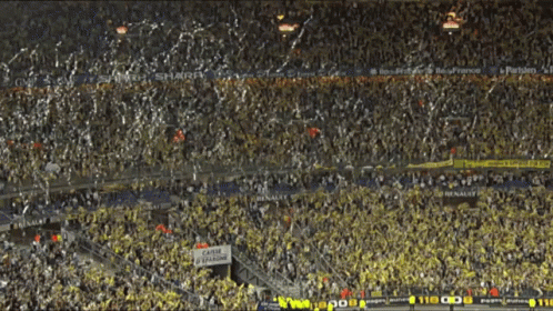 Fcsm Sochaux Montbeliard fans celebrate wildly in the stadium during the Coupe De France.