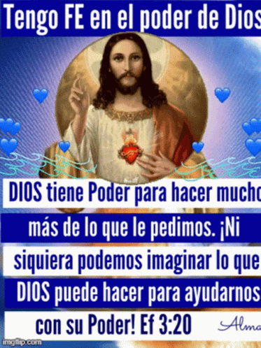 An image of Jesus Christ with text emphasizing faith in God's immense power, referencing Ephesians 3:20.