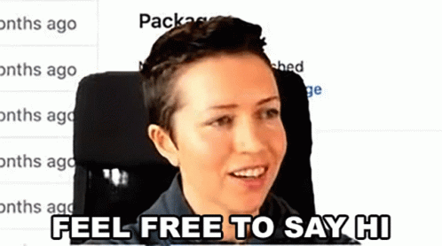 Gwen Faraday encourages viewers to say hi, with the message 'Feel Free To Say Hi' on screen.