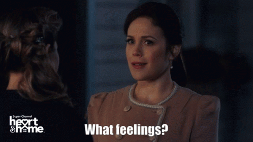 Erin Krakow questions 'What feelings?' in a scene from When Calls The Heart on Super Channel Heart & Home.