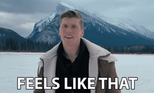 A man from The Reklaws sings 'Feels Like That' in a stunning snowy mountain landscape, expressing heartfelt emotions.