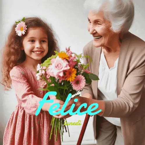 A vibrant illustration wishing 'Felice Pasquetta!' (Happy Easter Monday) with flowers, Easter eggs, and a bunny.