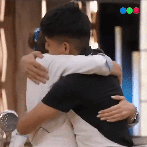 Estefanía Herlein and Antonio López share a warm hug and smiles on MasterChef Argentina.