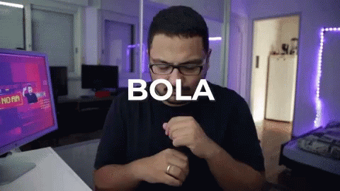 Felipe Nogs reacts to Anitta's 'Bola Rebola' while sitting at his computer, with song lyrics on screen.