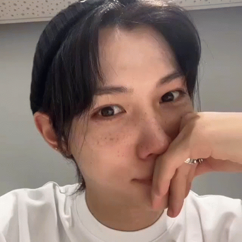 Felix from Stray Kids with a thoughtful or confused expression, hand resting on his face.