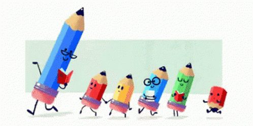 Maestra Liliana, a blue pencil teacher, leads her colorful pencil students in a joyful walk for Teacher's Day.