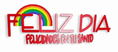 Animated greeting card with 'Happy Day, Congratulations on Your Saint's Day' text and a rainbow.