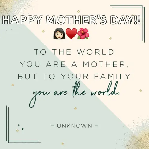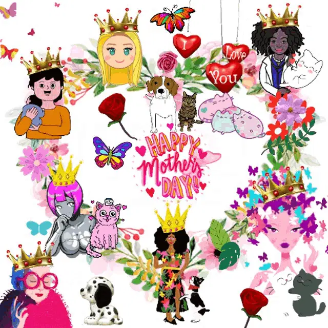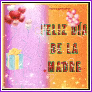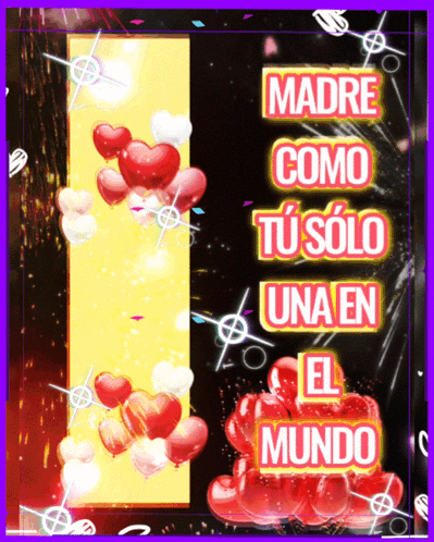 Animated graphic celebrating Mother's Day with text 'Feliz Día De La Madre' and 'Madre Como Tú Sólo Una En El Mundo'.
