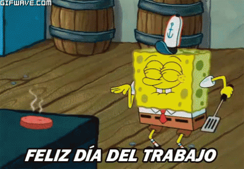 Spongebob Squarepants dances and cooks a Krabby Patty to celebrate Labor Day.