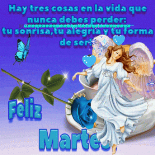 An angel, blue butterfly, and rose with a positive message: 'Never lose your smile, joy, and way of being.' Happy Tuesday!