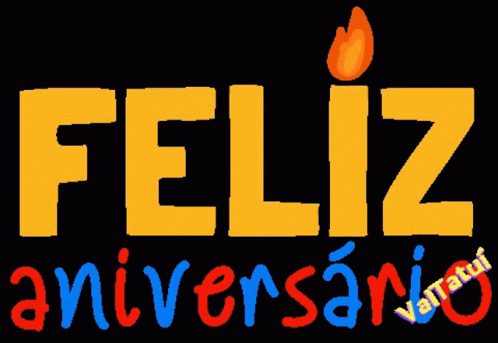 A vibrant 'Feliz Aniversário' (Happy Birthday) message with a candle, featuring 'ValTatui'.