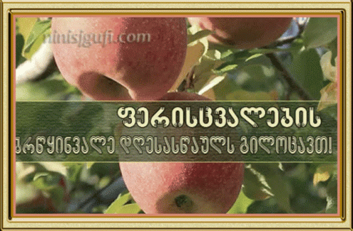 A festive greeting for Transfiguration Day from Ninisjgufi, featuring red apples on a tree.