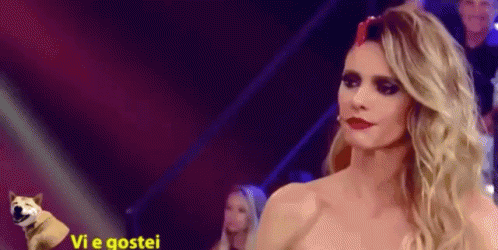 Fernanda Lima smiles brightly on stage, wearing a striking dress, during the show Amor E Sexo.