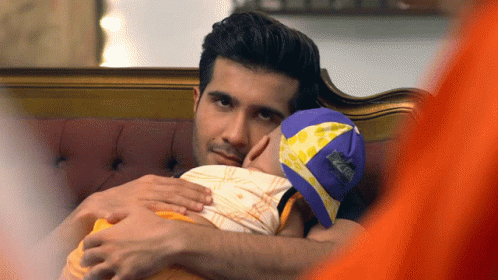 Pakistani actor Feroze Khan gently holds a baby, smiling warmly, from the drama Dil Kya Karay.