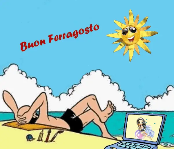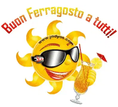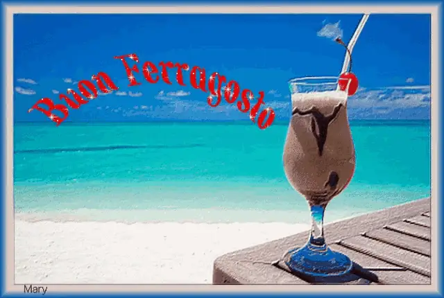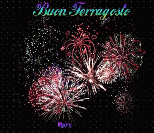 A vibrant fireworks display celebrating Ferragosto, with a special message 'Buon Ferragosto Mary'.