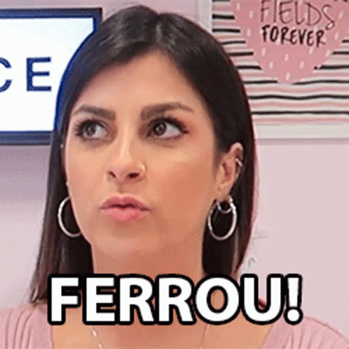 Nah Cardoso reacts with 'Ferrou!' (It's screwed!), expressing surprise or dismay while wearing hoop earrings.