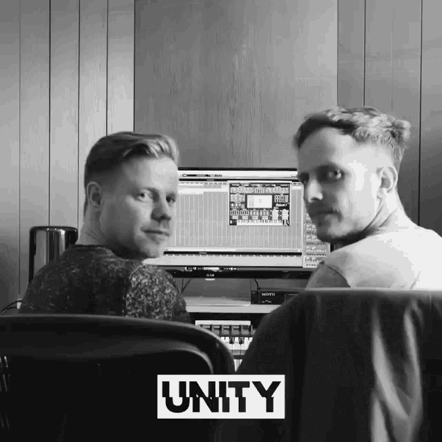 Ferry Corsten and Ilan Bluestone in the studio, with 'UNITY' displayed on screen.