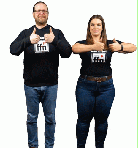 Axel Einemann and Carmen Wilkerling from FFN Radio show their approval and disapproval with thumbs up and down.