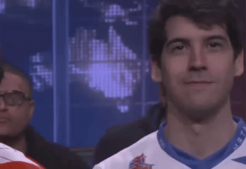 Brian F, an FGC pro gamer, looks at the camera with a slight smile, wearing a blue and white jersey.