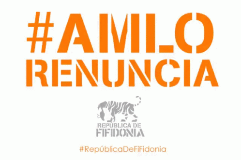 Text on a black background displays '#AMLO resigns', referencing the Mexican president.
