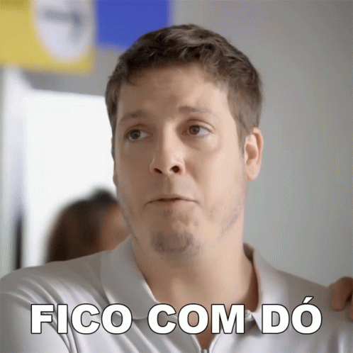 Fábio Porchat makes a funny face with the phrase 'Fico Com Dó' (I Feel Sorry) displayed, expressing empathy.