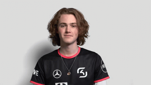 Jezu, wearing an SK Gaming jersey, smiles and makes a finger heart gesture.