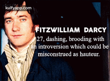 Fitzwilliam Darcy, 27, described as dashing and brooding with an introversion often misconstrued as hauteur.
