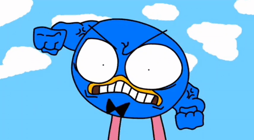 Karkarych or Losyash from Smeshariki gets a surprising hit from a blue character.