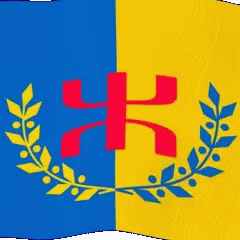 The vibrant Kabyle flag, featuring blue, yellow, and a red letter 'k' symbol.