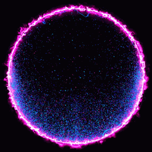 A mesmerizing, glowing circle of pink and blue particles on a black background.