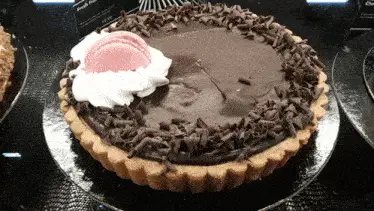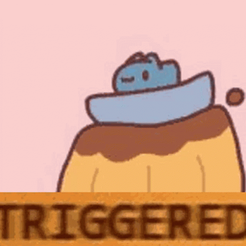 A cartoon cat sits atop a flan, next to a sign that reads 'triggered,' creating a humorous meme.
