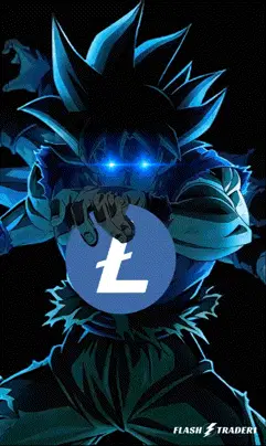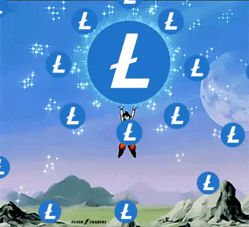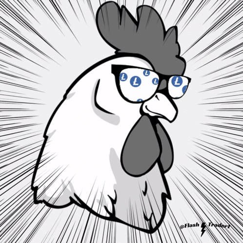 Animated Flashtrader1 logo featuring a rooster wearing Litecoin (LTC) glasses.