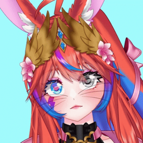 Flashy Klau Klau, the cute VTuber, smiles happily with bunny ears and vibrant red hair.