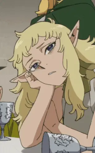 a cartoon drawing of a woman with blonde hair standing in a circle