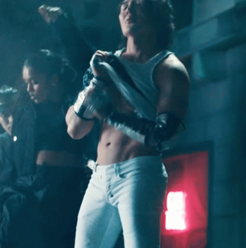Guy Tang flexing his abdominal muscles, showing off his physique in a white tank top and white pants.