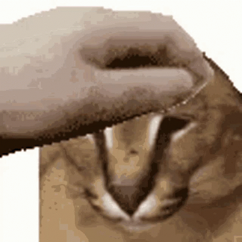Floppa, the Caracal, enjoying gentle pets from a human hand.
