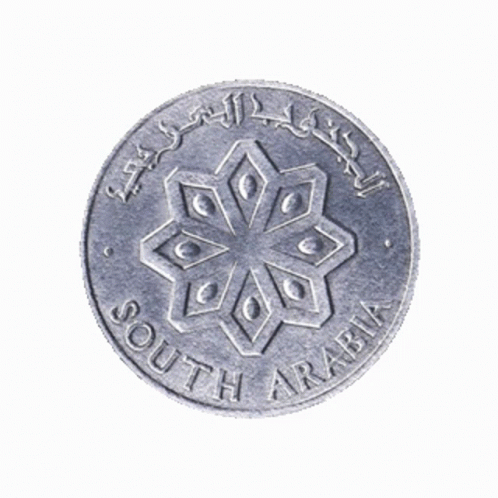 A silver coin from South Arabia, dated 1964, featuring Arabic script and crossed traditional daggers.