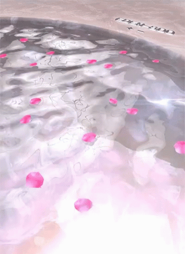 Valeris enjoys a serene moment with pink rose petals floating in a relaxing bath or jacuzzi.