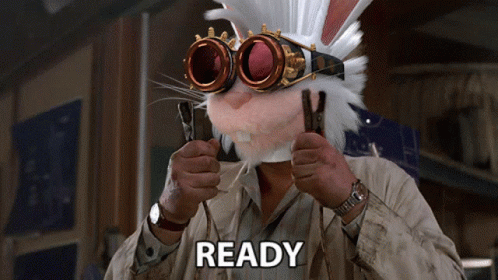 A man in a Fluf World rabbit mask and steampunk goggles holds pliers, ready for action.