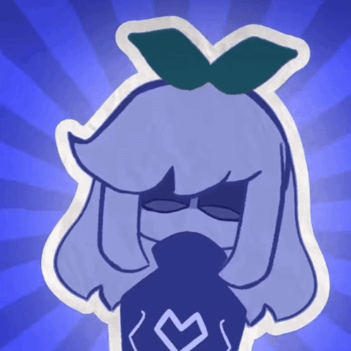 Animated character Seeyee by Fluffinmacncheese, a blue figure with a bow, against a blue background.