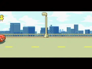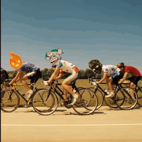 NFT characters from Flufworld Futureverse and Root racing on bicycles in a funny race.