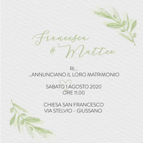 Francesca and Matteko announce their marriage on August 1, 2020, at Chiesa San Francesco in Giussano.