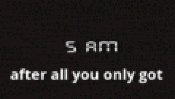 The iconic '5 AM' to '6 AM' transition screen from Five Nights at Freddy's, with the text 'after all you only got'.