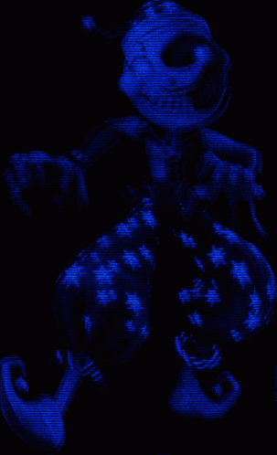 Moondrop from FNaF Security Breach appears in a dark, glitchy blue animation.