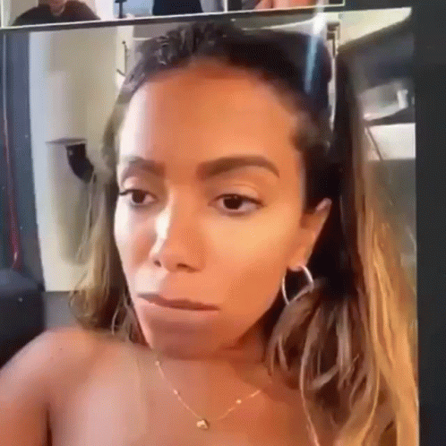 Woman with long hair and hoop earrings looks around with a curious or expressive face.